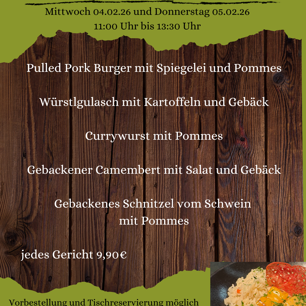 hier finden Sie einen Auszug aus unserer Speisekarte. Beachten Sie auch unser wöchentlich wechselndes Mittagsangebot für Mittwoch und Donnerstag. Vielen Dank!
